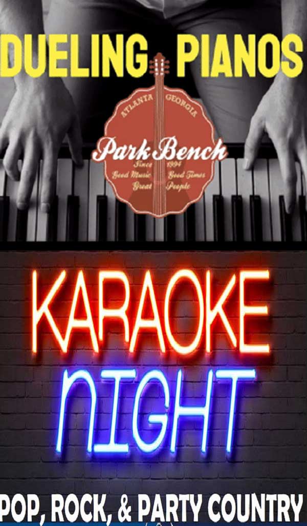 Park Bench double-header lineup, starting with Dueling Pianos hits & requests, followed by our popular SING-ALONG KARAOKE featuring hot hits from POP, ROCK, & PARTY COUNTRY favorites! Doors Open: 5:00 pm