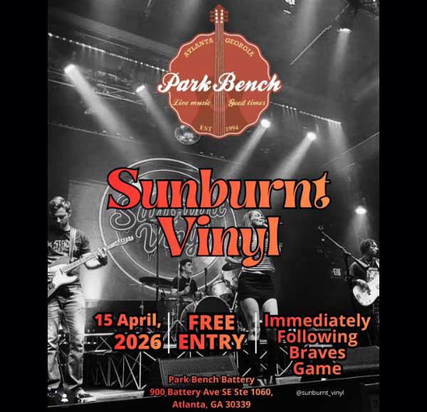 Live music, great drinks, and a friendly atmosphere are all reasons that Park Bench has once again been named "The #1 spot to visit in The Battery on Braves home game days!" Stop by on your way thru The Battery to enjoy our comfortable indoor seating, open patio space, and TO-GO DRINKS that will help you get ready for the game. The Park Bench after-game experience features live music party country and favorite hits! Join us for exciting after-game fun as we celebrate Braves fever and turn the volume up! No Cover | Must be 21+ Doors Open: 4:00 pm Live Music: After-game performance begins at 9:15 pm immediately following the Braves game.